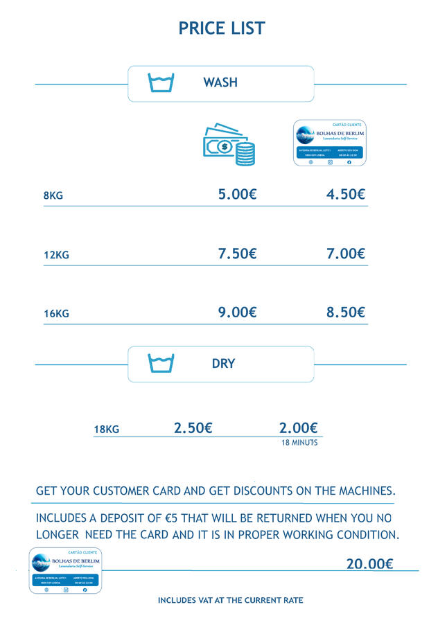 Sign up for the Bolhas de Berlim Loyalty Card, in order to save even more when using our services.